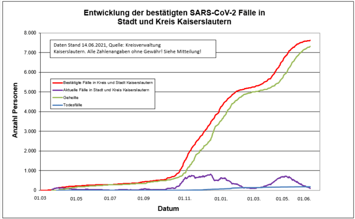 Corona-Zahlen für die Stadt und den Landkreis Kaiserslautern können Sie dieser Statistik entnehmen:
