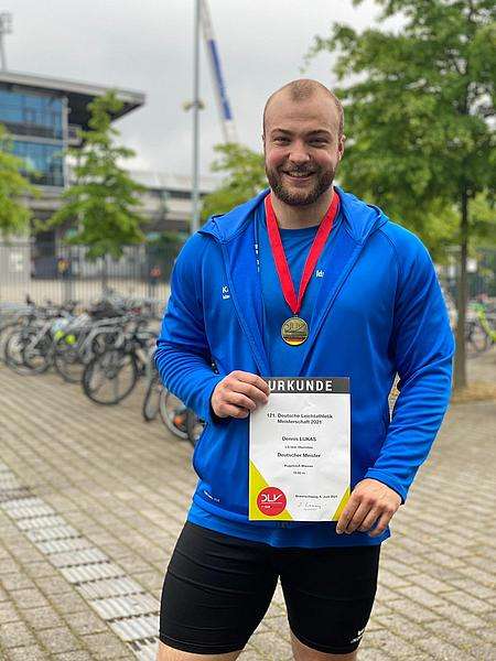 Braunschweig: mit einer Weite von 19,82 Metern gewinnt Dennis Lukas, LG Idar-Oberstein, den Titel des Deutschen Meisters im Kugelstoßen 2021. Der 27-Jährige, der an der TU Kaiserslautern den Master-Studiengang „Energie- und Verfahrenstechnik“ absolviert, knüpft damit allen Pandemie-Einschränkungen zum Trotz lückenlos an seine starken Leistungen aus dem Jahr 2020 an.