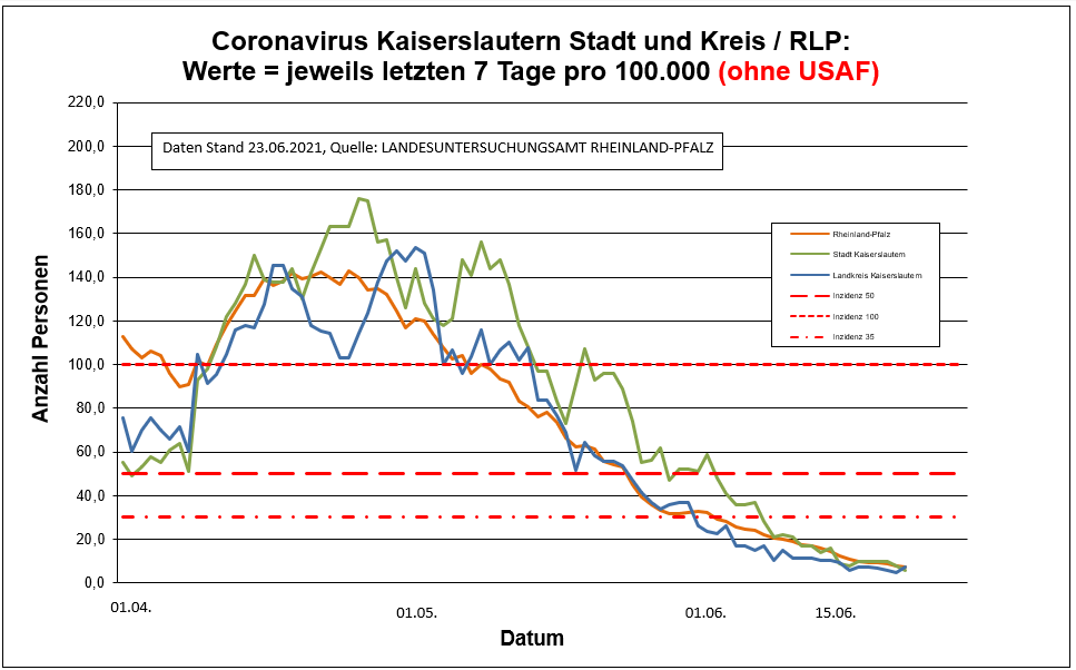 Coronavirus SARS-CoV-2: Aktuelle Fallzahlen für Rheinland-Pfalz, (Datenstand vom 23.06.2021, 14:10 Uhr)