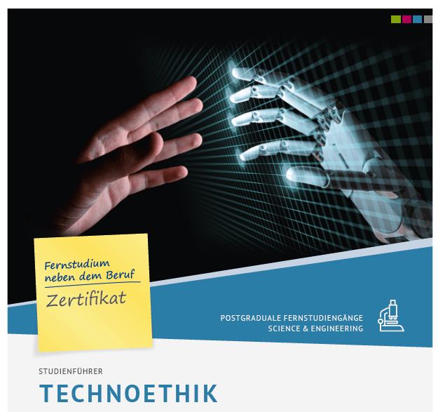 Genau darauf bereitet der Fernstudiengang Technoethik vor: Die Studierenden werden dazu befähigt, soziale, kulturelle und gesellschaftliche Fragen des Alltags beziehungsweise der Berufspraxis in eine moralische Fragestellung zu übersetzen und sie ethisch zu bewerten. Durch kritisches Hinterfragen der Technologie sollen mit Hilfe einer Technoethik neue Impulse für einen verantwortungsvollen Umgang mit technischen Neuerungen gewonnen werden.