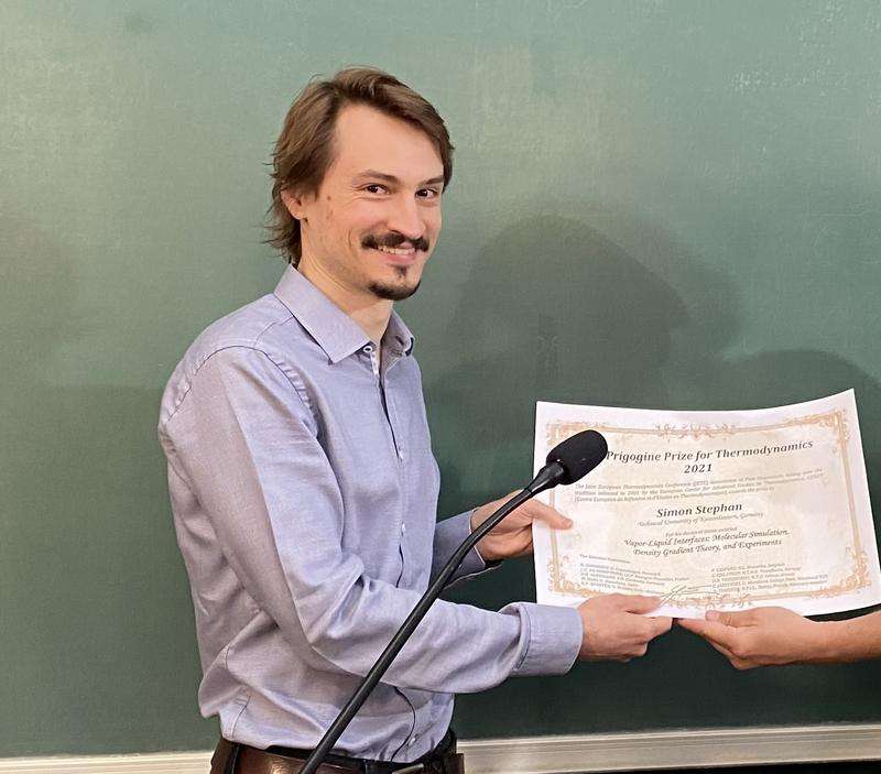 Der Ilya Prigogine Prize for Thermodynamics wird seit 2001 alle zwei Jahre vergeben. Er ist nach dem Nobelpreisträger Ilya Prigogine benannt und wurde vom European Center for Advanced Studies in Thermodynamics ins Leben gerufen. Damit werden herausragende Promotionen auf dem Gebiet der Thermodynamik ausgezeichnet. Der Preis wird alle zwei Jahre im Rahmen der Joint European Thermodynamics Conference (JETC) vergeben. Stephan hat ihn am 18. Juni erhalten.