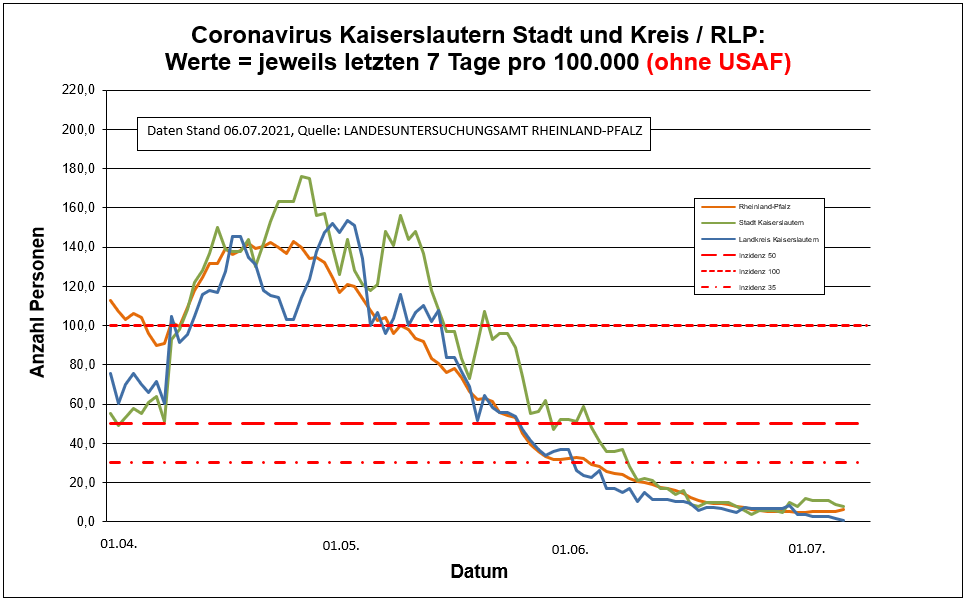 Coronavirus SARS-CoV-2: Aktuelle Fallzahlen für Rheinland-Pfalz, (Datenstand vom 06.07.2021, 14:10 Uhr)