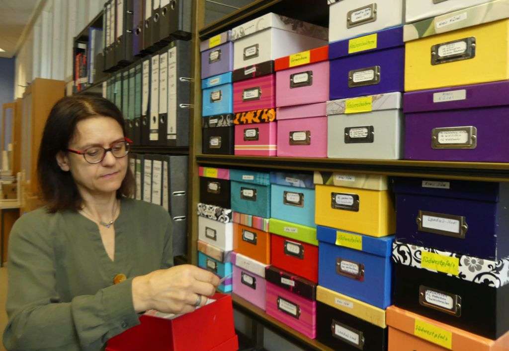 Bu: Begutachtet den Neuzugang: Pfalzbibliotheksleiterin Claudia Germann freut sich über die zahlreichen Fotos