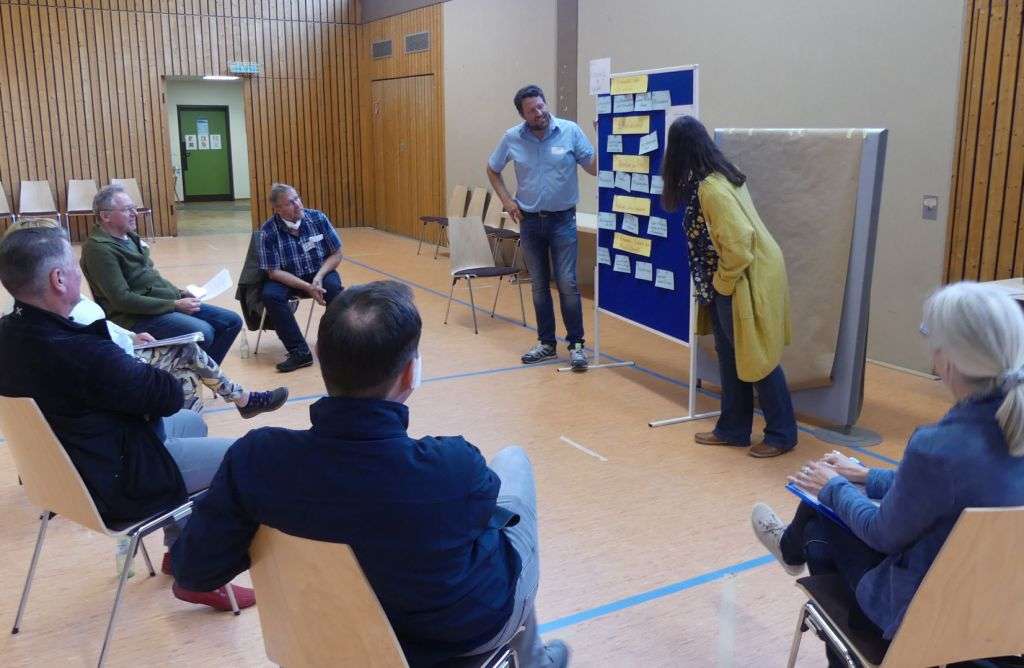 Beraten und Gestalten für mehr Nachhaltigkeit im eigenen Ort: Hier die Sippersfelder Themengruppe „Klimaschutz und Mobilität“ bei der zweiten Zukunftswerkstatt (Foto: Biosphärenreservat/frei)