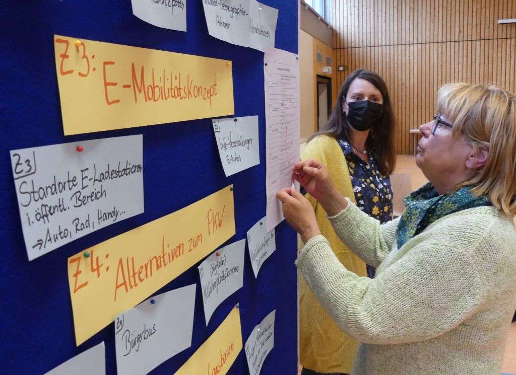 In der zweiten Zukunftswerkstatt wurden einzelne Maßnahmen beispielhaft verfeinert und bis in die konkrete Umsetzung durchdacht. Das ist wichtig, weil die Nachhaltigkeitsstrategien für jede Kommune auch einen konkreten Aktionsplan enthalten sollen. So war es das Ziel der zweiten Zukunftswerkstätten, Fragen nach dem Zeitplan und nach Zuständigkeiten in ausgewählten Maßnahmen vorab zu klären, etwa wer die Maßnahme trägt und koordiniert und wer zuarbeitet. Auch wurden in dieser Zukunftswerkstatt der Entwurf des Leitbilds jeder Kommune besprochen. Das Nachhaltigkeits-Leitbild beschreibt den jeweiligen Zustand, den die jeweilige Gemeinde im Jahr 2030 erreichen will. Den Rahmen für die Ziele bilden gemäß der Agenda 2030 und der globalen Nachhaltigkeitsziele die planetaren Belastbarkeitsgrenzen der Ökosysteme sowie soziale Gerechtigkeit und Leben in Würde für alle, auch im entwicklungspolitischen Eine-Welt-Kontext.