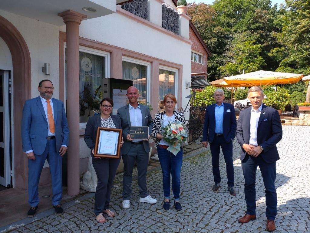 Bei der Überreichung mit vor Ort waren Oberbürgermeister Klaus Weichel sowie Julia Bickmann und Thomas Keller von der städtischen Tourist Information. „Die Auszeichnung des Barbarossahofs ist auch eine Auszeichnung für den Hotelstandort Kaiserslautern, dessen Portfolio damit noch breiter wird. Das sind gute Nachrichten in insbesondere für die Hotelbranche sehr schwierigen Zeiten“, gratulierte das Stadtoberhaupt zum vierten Stern. Wie Weichel erklärt, habe man in Kaiserslautern bis Pandemiebeginn eine kontinuierliche Steigerung der Übernachtungszahlen verzeichnen können, 2019 sogar um weitere 16 Prozent gegenüber 2018. „Das ist eine Entwicklung, die wir bald hoffentlich wieder aufnehmen können. Unsere Hotelbetriebe sind hochmotiviert und freuen sich, wieder Gäste empfangen zu können.“