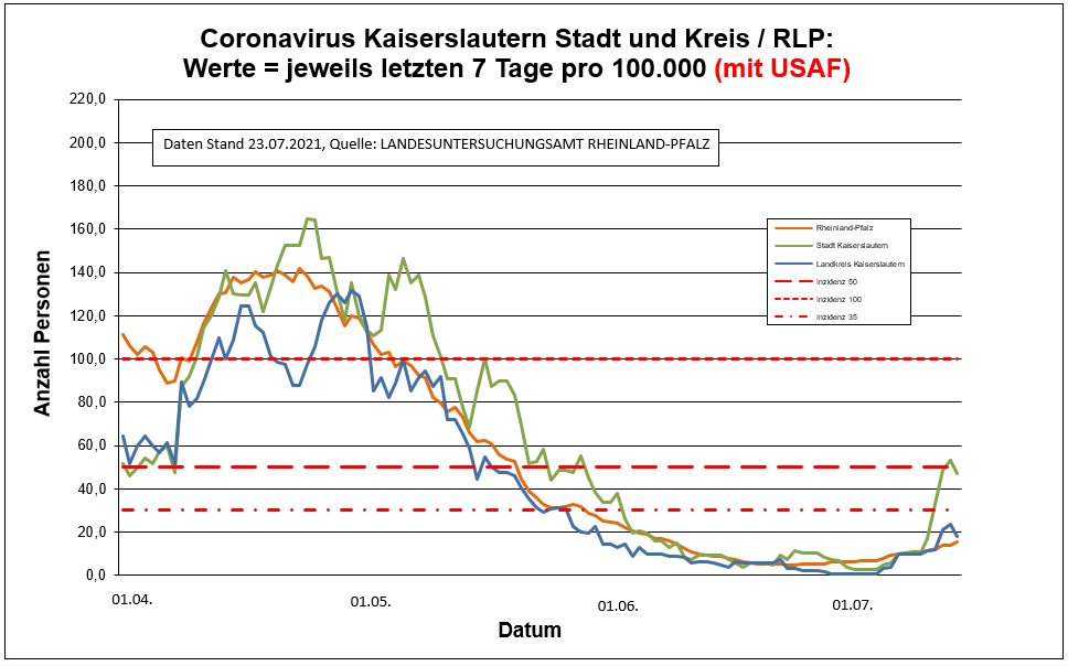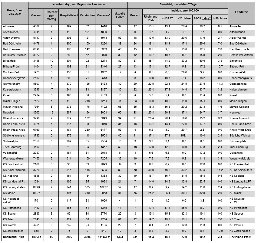 Coronavirus SARS-CoV-2: Aktuelle Fallzahlen für Rheinland-Pfalz, (Datenstand vom 23.07.2021, 14:10 Uhr)