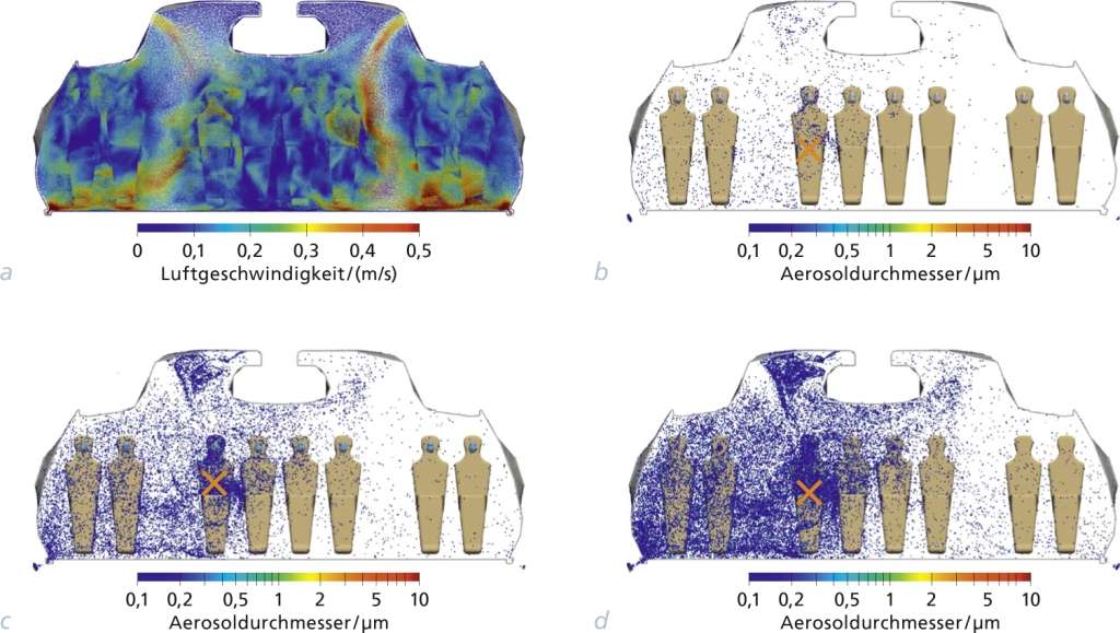 Rechtzeitig zum Sommer sind die Inzidenzen gesunken, allerorts sind Lockerungen spürbar. Viele Menschen nutzen dies, um endlich einmal wieder in den Flieger zu steigen und Urlaub in anderen Gefilden zu genießen. Doch zwingt die Delta-Variante zu erneuter Vorsicht in der Corona-Pandemie. Abstandhalten und Maskentragen sind daher nach wie vor angesagt. Während die Ansteckungsgefahr im Außenbereich recht gering ist, können sich die infektiösen Aerosole in Innenräumen leicht ansammeln und zu Ansteckungen führen. Wie verbreiten sich diese Aerosole, und wie hoch ist das Ansteckungsrisiko in Flugzeugen, Supermärkten, Klassenräumen und Co?