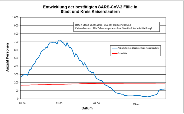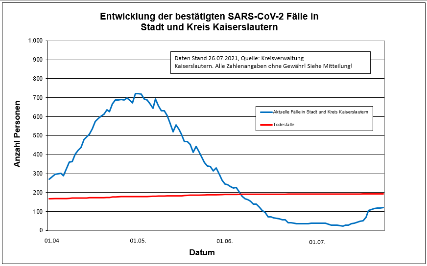 Corona-Zahlen für die Stadt und den Landkreis Kaiserslautern können Sie dieser Statistik entnehmen: