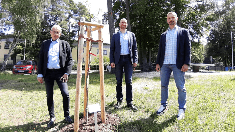Oberbürgermeister Dr. Klaus Weichel bekräftigte: „Das ist eine sehr schöne Aktion, die die Sparkasse Kaiserslautern im ersten Jahr ihres Bestehens durchführt. Die Symbolkraft – lasst uns Bäume pflanzen – ist von großer Bedeutung!“ Seine Schule sei sehr heterogen, sagte Schulleiter Torsten Reuter, so freue man sich, jetzt neben Kiefern, Linden nun auch einen Birnbaum auf dem Schulgelände zu haben. Er könne sich gut vorstellen, dass der Obstbaum auf dem Schulhof auch in den Schulunterricht miteinbezogen wird.