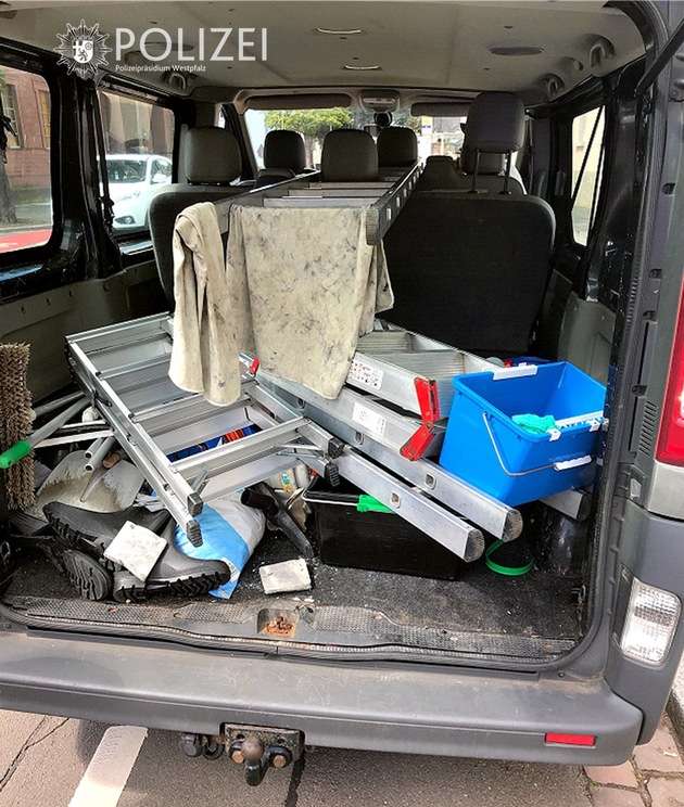 Gegen 11.20 Uhr überprüften die Einsatzkräfte einen Opel Vivaro und stellten schon beim Blick durch die Fahrerscheibe fest, dass hier etwas „nicht in Ordnung“ war, denn eine große Leiter lag quer vom Laderaum über die Sitze hinweg und ragte in die Fahrerkabine. Und auch der Blick auf die Ladefläche zeigte, dass der 28-jährige Fahrer so nicht weiterfahren konnte, denn hier lagen weitere Leitern, Werkzeuge und Eimer, gefüllt mit Baumaterial, ungesichert kreuz und quer. Dem Mann wurde lediglich gestattet, wenige hundert Meter bis zur Anschrift eines Familienangehörigen zu fahren und dort den Transporter zu entladen.