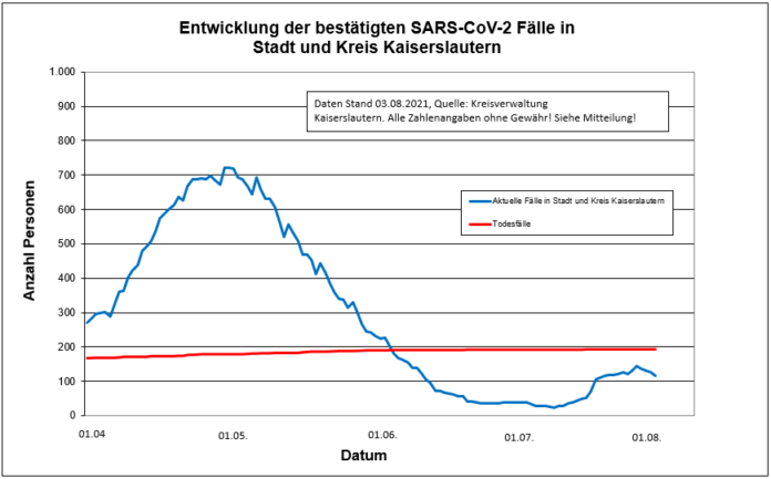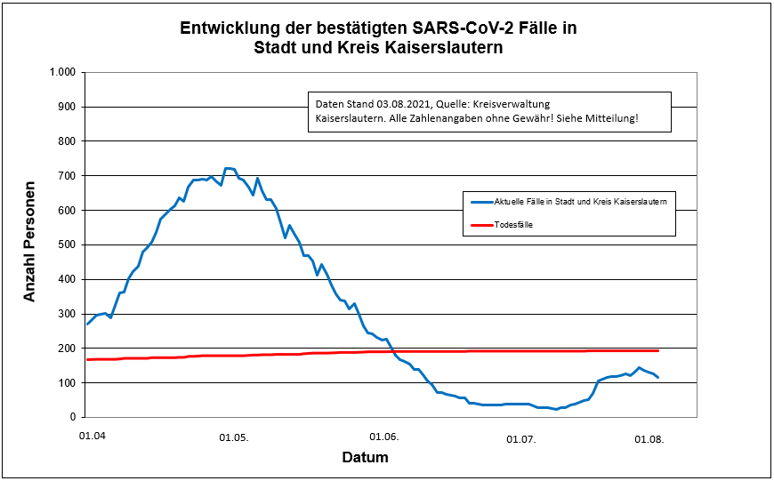 Corona-Zahlen für die Stadt und den Landkreis Kaiserslautern können Sie dieser Statistik entnehmen: