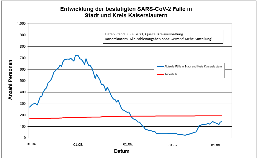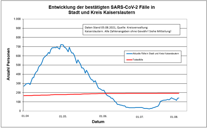 Corona-Zahlen für die Stadt und den Landkreis Kaiserslautern können Sie dieser Statistik entnehmen: