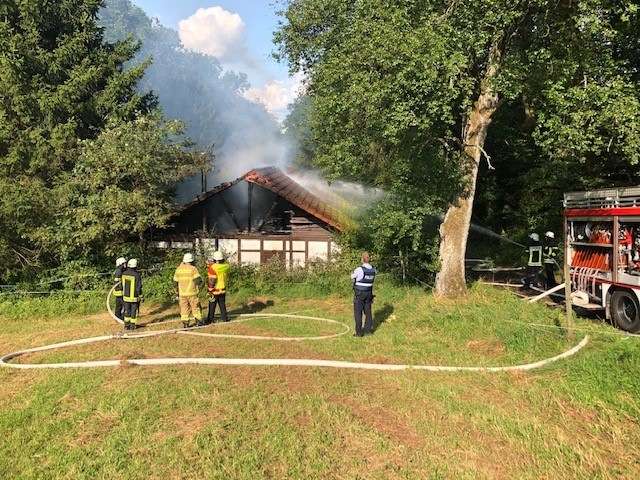 Am Freitagnachmittag kam es zum Brand des Vereinsheims des Natur- und Vogelschutzvereins in Katzweiler. Aus bislang unbekannter Ursache griff das Feuer von einem Kamin auf das Gebäude über und setzte den Dachstuhl in Brand, der vollständig ausbrannte. Auch die übrigen Räumlichkeiten wurden hierbei beschädigt. Die Schadenshöhe wird auf etwa 100.000 Euro geschätzt. Zum Zeitpunkt des Feuers befanden sich keine Personen im Gebäude.|PvD
