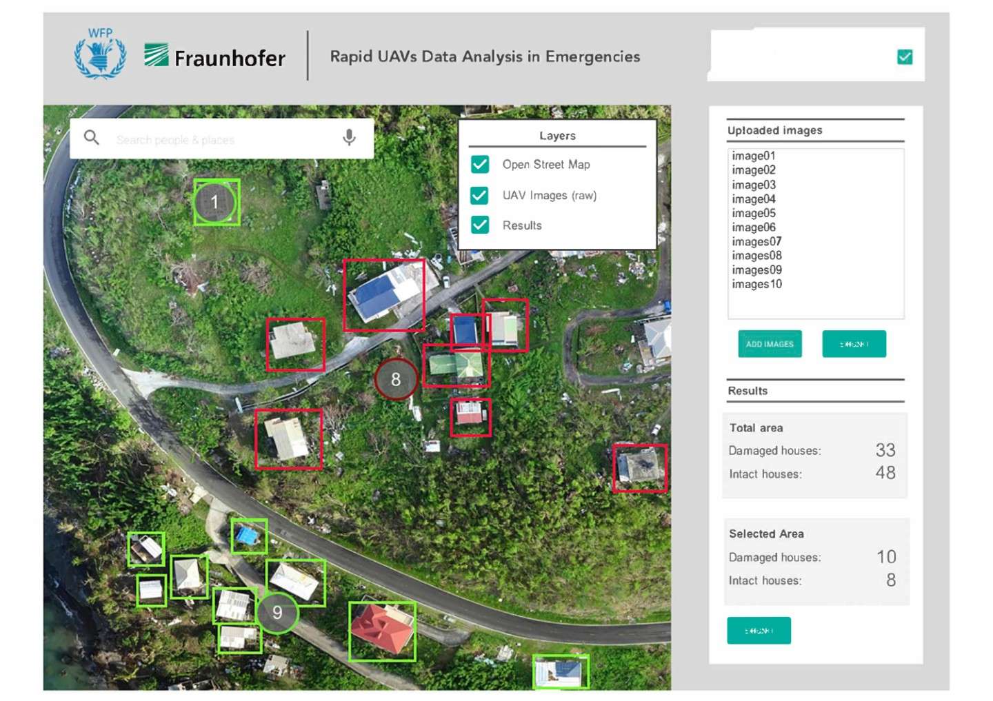 Manche Hilfsorganisationen, wie z.B. das World Food Programme (WFP) der Vereinten Nationen, setzen deshalb unbemannte Drohnen ein, die Luftbilder vom Krisengebiet erstellen. Die Ersthelfer:innen sichten anschließend Hunderte von Einzelbildern und fügen sie zu einem Gesamtbild zusammen – das dauert Stunden; so vergeht wertvolle Zeit, bis die Rettungsteams samt Ausrüstung und Hilfsgütern an ihren Bestimmungsort gelangen.