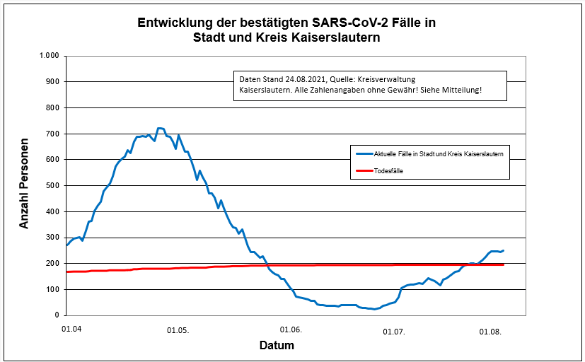 Corona-Zahlen für die Stadt und den Landkreis Kaiserslautern können Sie dieser Statistik entnehmen:
