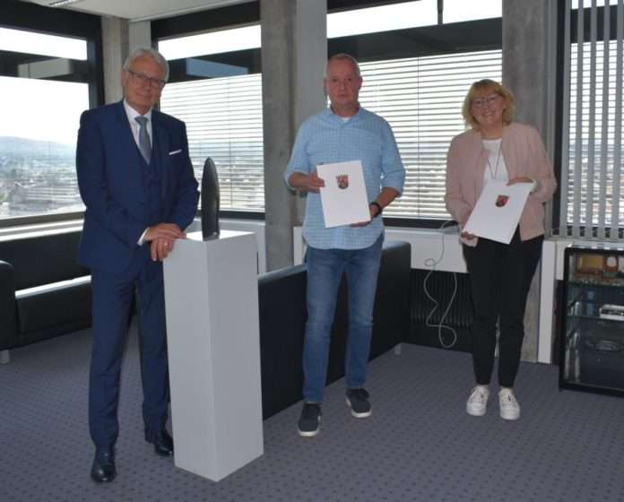 40 Jahre im Öffentlichen Dienst, 40 Jahre bei der Stadt Kaiserslautern: Auf diese reife Leistung können nun auch Gertrud Stahl und Udo Pohl zurückblicken. Oberbürgermeister Klaus Weichel würdigte die beiden langjährigen Mitarbeiter der Stadtverwaltung in einer kleinen Feierstunde am Donnerstagmittag im Rathaus. Gertrud Stahl trat ihren Dienst bei der Stadt im Jahre 1981 an und arbeitet heute im Sozialpädagogischen Beratungs- und Betreuungsdienst im Rathaus West. Auch Udo Pohl begann 1981 bei der Stadtverwaltung. Er ist in der Abteilung Kataster- und Ingenieurvermessung im Referat Stadtentwicklung tätig. Das Stadtoberhaupt bedankte sich bei der Kollegin und dem Kollegen für die langjährige Verbundenheit zur Stadt und die gute Arbeit. Neben der offiziellen Dankesurkunde des Landes aus den Händen des OB erhielten die Jubilare ein kleines Präsent aus den Händen von Personalratsmitglied Friedrich Bußer. Ihre Glückwünsche überreichten auch die beiden zuständigen Referatsleiter Ludwig Steiner und Elke Franzreb sowie der Leiter des Referats Personal Wolfgang Mayer.