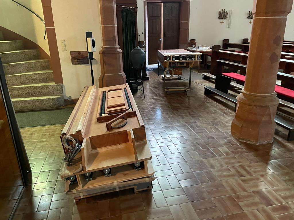 Bereits vor einigen Wochen berichteten wir über den Umzug von mehr als 1000 Orgelpfeifen von der inzwischen abgerissenen, profanierten Kirche St. Norbert in Kaiserslautern in die Kirche St. Rochus nach Hohenecken. Inzwischen ist der technische Aufbau fast beendet. Das Gehäuse der Orgel steht bereits aufgebaut in Hohenecken und in den kommenden Wochen dürfen die Orgelpfeifen nach und nach wieder an ihren Platz.