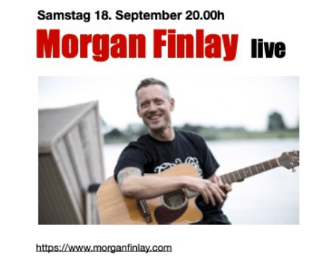 Samstag 18. September 20.00h Morgan Finlay live https://www.morganfinlay.com