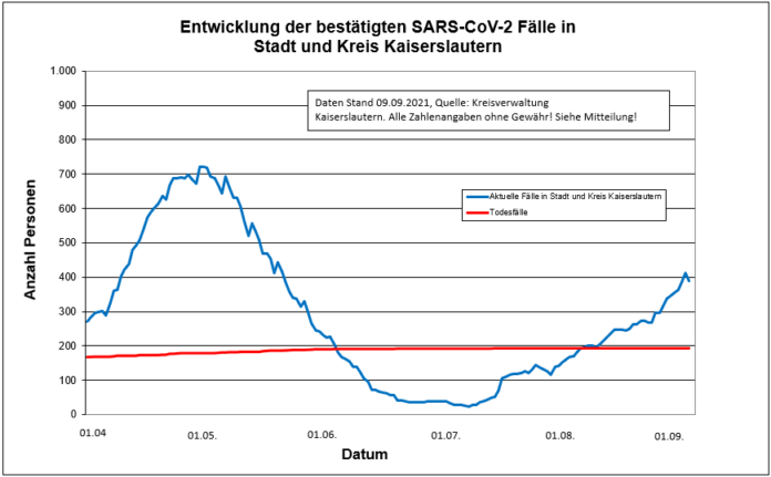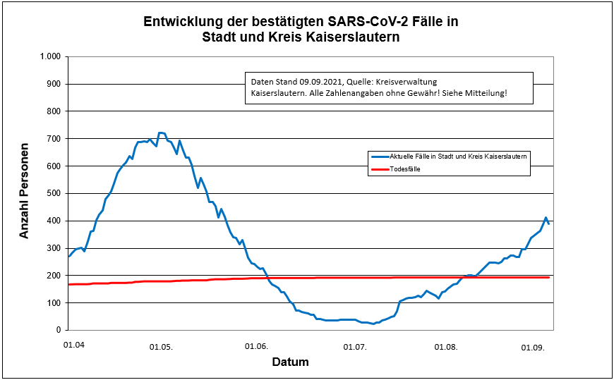 Corona-Zahlen für die Stadt und den Landkreis Kaiserslautern können Sie dieser Statistik entnehmen: