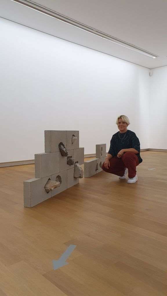 Aus Betonguss und in Folie eingeschweißten Bauschuttstücken: Theresa Lawrenz und ihr Werk „hold in trust“ von 2019