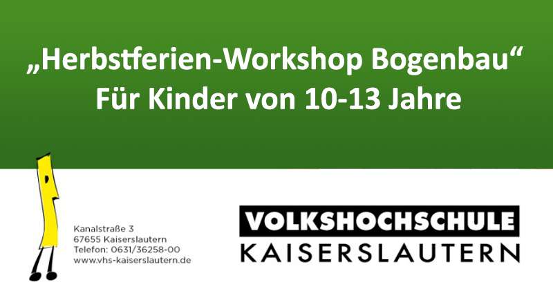 Am Samstag, dem 16.10.2021, findet in der VHS Kaiserslautern von 10-17 Uhr ein Bogenbau-Workshop statt.