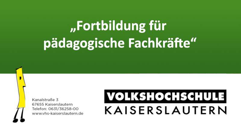 Die Volkshochschule Kaiserslautern bietet für bereits aktive Sprachförderkräfte die Fortbildung „Vertiefungsfortbildung Alltagsintegrierte Sprachförderung und Sprachbildung – „Mit Kindern im Gespräch“ an. Unter Leitung von Bärbel Sender findet die Fortbildung an 3 Terminen, Donnerstag, 17.10.2021, 04.11.2021 und 09.12.2021, jeweils von 9-16 Uhr, im Weiterbildungszentrum, Kanalstraße 3, 67655 Kaiserslautern, statt.