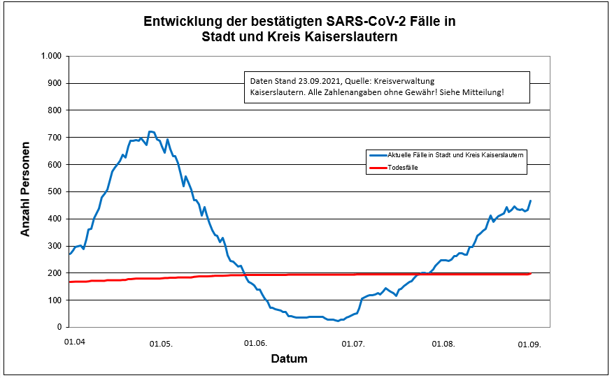 Corona-Zahlen für die Stadt und den Landkreis Kaiserslautern können Sie dieser Statistik entnehmen. In die heutige Meldung fließen Nachmeldungen von 3 Todesfällen ein: