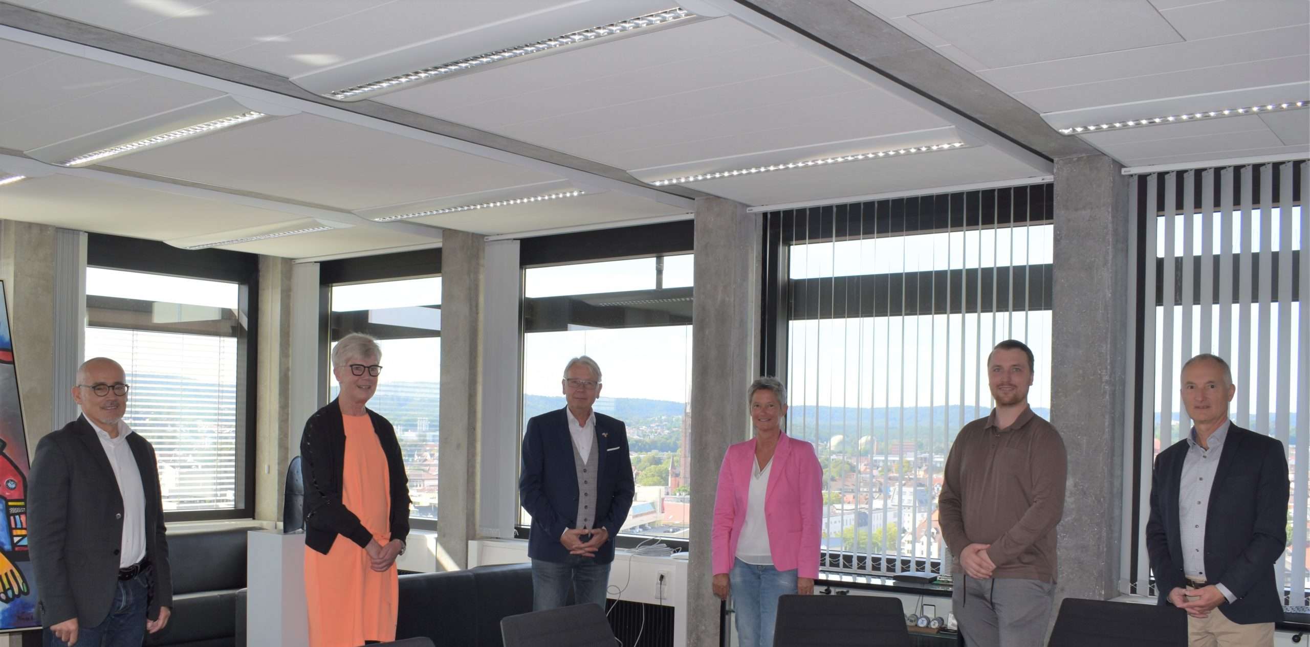 Foto: (v.l.n.r.) Ludwig Steiner, nachfolgender Referatsleiter für Jugend und Sport, Katharina Rothenbacher-Dostert, scheidende Referatsleiterin, Oberbürgermeister Klaus Weichel, Bürgermeisterin Beate Kimmel, Eric Burkhardt, stellvertretender Personalratsvorsitzender, und Wolfgang Mayer, Referatsleiter für Personal.