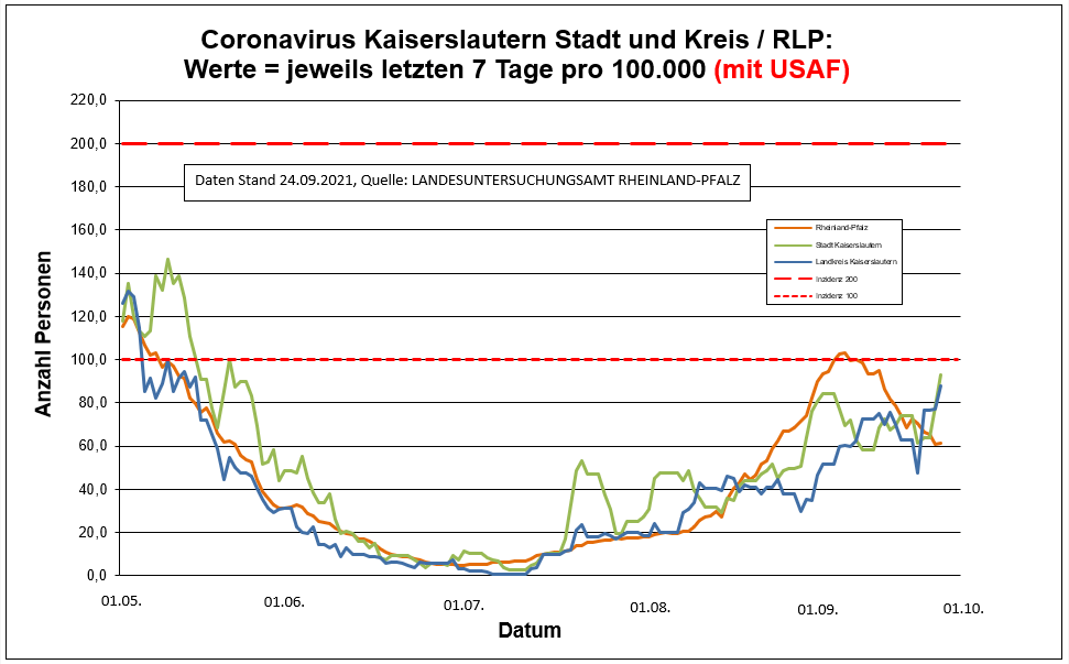 Coronavirus SARS-CoV-2: Fallzahlen und Leitindikatoren für Rheinland-Pfalz, (Datenstand vom 24.09.2021, 14:10 Uhr)