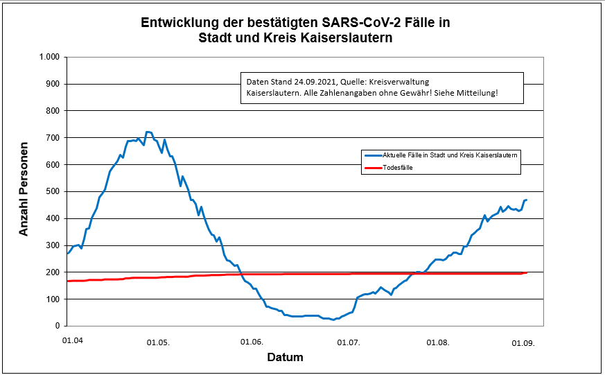 Corona-Zahlen für die Stadt und den Landkreis Kaiserslautern können Sie dieser Statistik entnehmen:
