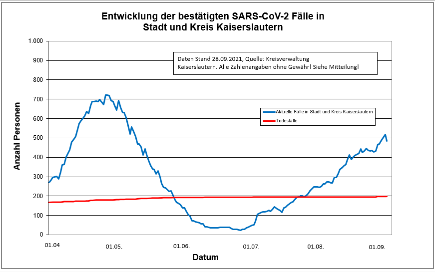 Corona-Zahlen für die Stadt und den Landkreis Kaiserslautern können Sie dieser Statistik entnehmen: