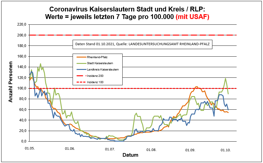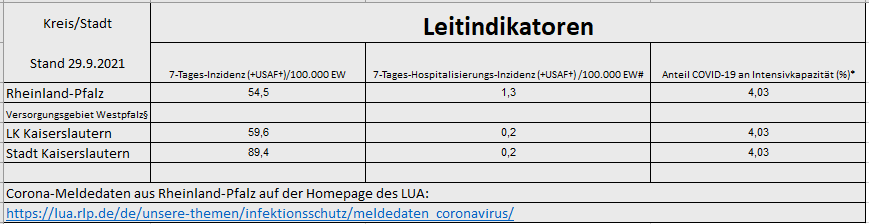 Corona-Zahlen für die Stadt und den Landkreis Kaiserslautern können Sie dieser Statistik entnehmen: