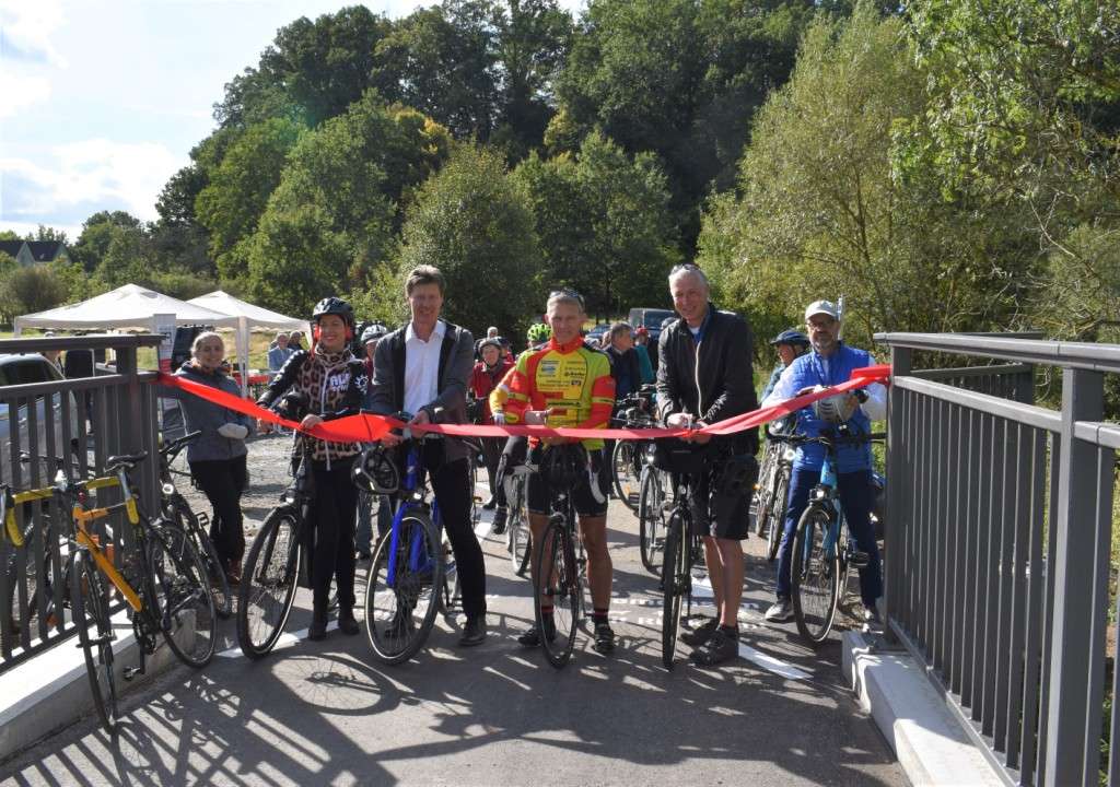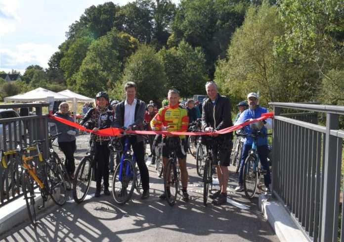 Etwa 1,3 Kilometer lang ist die beliebte Radwegstrecke zwischen dem Kreuzhof und dem Stellwerkmuseum in Otterbach. Um einen ganzjährig befahrbaren, auch für den Alltagsverkehr attraktiven Radweg herzustellen, wurde das Teilstück der künftigen Bachbahnstrecke in den vergangenen Monaten auf drei Meter Breite ausgebaut und asphaltiert. Auch eine neue Brücke am Kreuzhof wurde gebaut. Am Donnerstag gab Baudezernent Peter Kiefer gemeinsam mit Landrat Ralf Leßmeister sowie den Verbandsbürgermeistern Anja Pfeiffer und Harald Westrich die sanierte Strecke frei.