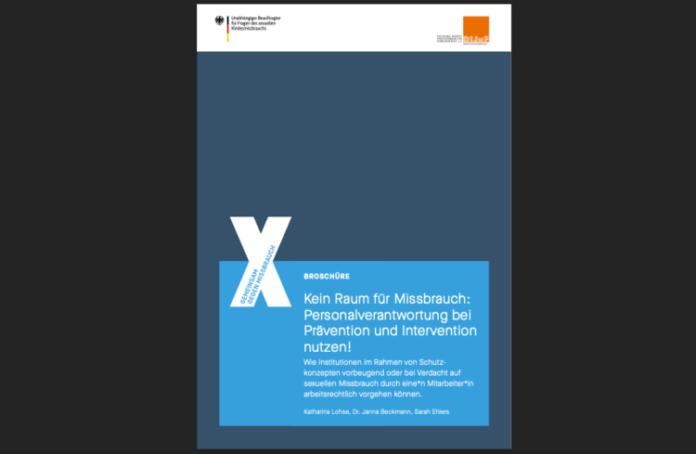 Da die Frage der Handlungsmöglichkeiten im Rahmen der Ausübung der Personalverantwortung ein besonders relevanter Themenkomplex ist, der in der Praxis mit vielen Unsicherheiten verbunden ist, wurde ergänzend die separate Broschüre „Kein Raum für Missbrauch: Personalverantwortung bei Prävention und Intervention nutzen!“ entwickelt. Diese kompakte Handreichung soll allen Personalverantwortlichen in Einrichtungen und Organisationen als Einstiegsinformation dabei unterstützen, wie sie Personalverantwortung zum Beispiel im Rahmen von Schutzkonzepten nutzen können, um sexuelle Gewalt durch Mitarbeitende zu verhindern bzw. zu beenden.