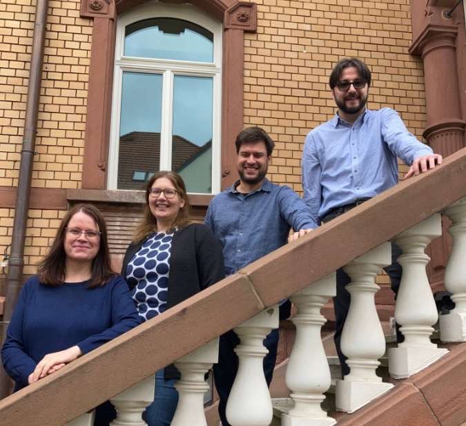 Bu: Die Wissenschaftlerinnen und Wissenschaftler des Instituts für pfälzische Geschichte und Volkskunde (von links): Direktorin Dr. Sabine Klapp, Barbara Schuttpelz (Volkskunde), Dr. Maximilian Lässig (Digital Humanities) und Dr. Christian Decker (Geschichte)