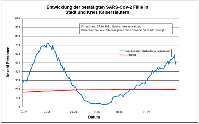 Corona-Zahlen für die Stadt und den Landkreis Kaiserslautern können Sie dieser Statistik entnehmen: