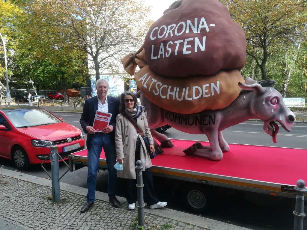 Mit der Aktion verdeutlichten die Kommunen erneut ihre Forderung nach einem fairen Neustart für benachteiligte Städte und Kreise. „Wir leiden unter den gewaltigen Lasten, die die ungerechte Finanzverteilung zwischen Bund, Ländern und Kommunen verursacht hat“, erklärte Beigeordnete Peter Kiefer, der gemeinsam mit der Leiterin des Referats Finanzen, Claudia Toense, Kaiserslautern in Berlin vertrat. Die Pandemie habe erneut vor Augen geführt, dass viele Kommunen eine Krise nicht aus eigener Kraft bewältigen können, sondern auf Hilfen von Bund und Land angewiesen sind. „Deshalb fordern wir einen Neustart bei den Finanzen und eine faire Verteilung zwischen Bund, Ländern und Gemeinden.“ Man sei, so Kiefer, allgemein auf offene Ohren gestoßen. Der Kaiserslauterer Beigeordnete übernahm die Übergabe des FDP-Steins an die Kommunalpolitische Sprecherin der Partei, Marie-Agnes Strack-Zimmermann.
