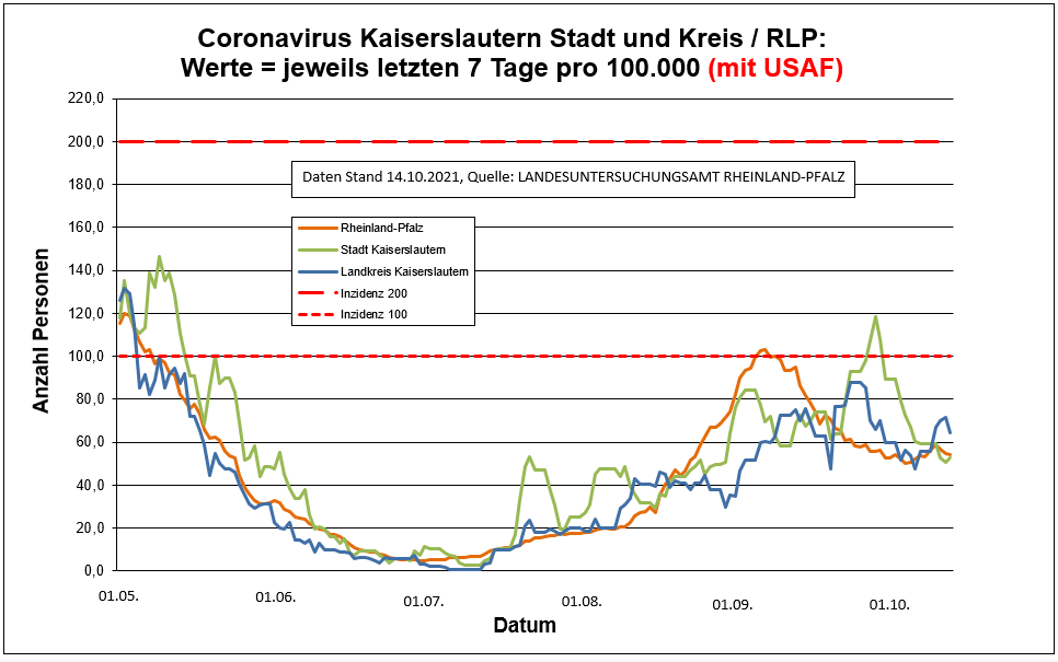 D USAF = U.S. Armed Forces; Berechnung der Inzidenz /100.000 unter Berücksichtigung der mit Stand vom 30.6.2020 in der Gebietseinheit stationierten U.S. Streitkräfte