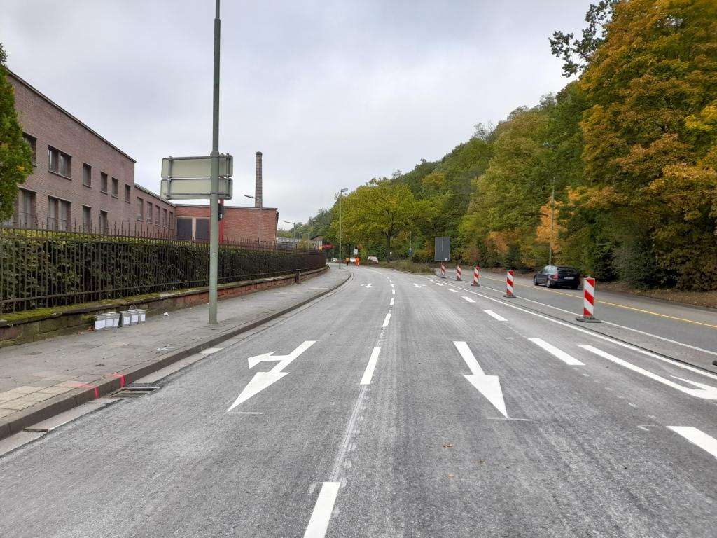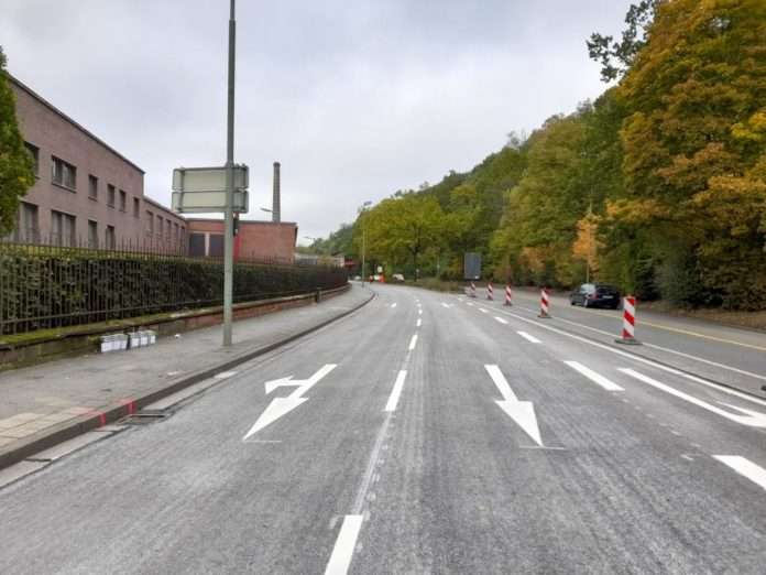 Die Deckenarbeiten in der Lauterstraße auf Höhe der Kreuzung Mühlstraße/Burgstraße sind bereits abgeschlossen. Starke Spurrillen und eingedrückter Asphalt erforderten dringend eine Sanierung. Da es sich um eine wichtige Hauptverkehrsstraße handelt, wurden die Arbeiten während der Herbstferienzeit, wenn das tägliche Verkehrsaufkommen vergleichsweise gering ist, ausgeführt. Auch an den Wochenenden wurde fest angepackt. Bei weitgehend trockener Witterung wird ab Sonntag 14 Uhr die Sperrung in der Lauterstraße aufgehoben. Bis dahin gilt es, noch die fehlenden Straßenmarkierungen sowie die Induktionsschleifen aufzubringen. Auch beschädigte Schächte, Borsteine oder Rinnen werden in diesem Zuge erneuert.