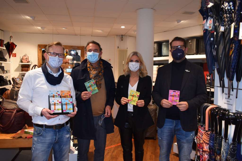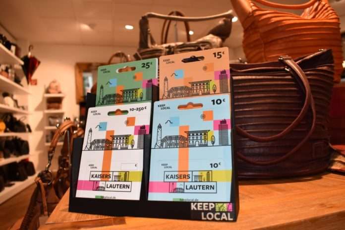 Oberbürgermeister Klaus Weichel, Alexander Hess vom Citymanagement und Heidi Huoy und Andreas Maurer vom St. Wendeler Unternehmen KeepLocal haben heute Morgen im „bags&more“ in der Schneiderstraße die neuen Kaiserslautern-Gutscheine vorgestellt. Pünktlich zum Start des Weihnachtsmarkts am 22. November soll das Gutscheinsystem in der Barbarossa-Stadt an den Start gehen. Rund 30 Ladengeschäfte sind bereits mit an Bord, mit weiteren rund 35 steht man in Verhandlungen. Die Vorstellung fand im „bags&more“ statt, weil dies das erste Geschäft war, das nach dem Aufruf des Citymanagements im September seine Teilnahme signalisiert hatte. Die Gutscheinkarte in Höhe von maximal 250 Euro wird in allen teilnehmenden Geschäften zu erwerben und auch einlösbar sein – digital wie analog. KeepLocal vertreibt die Gutscheine zudem in den großen Gutscheinständern in Tankstellen, Drogerie- und Supermärkten. Wer will, kann sich auch die KeepLocal Kunden-App installieren, Gutscheine darauf übertragen und somit immer dabeihaben.