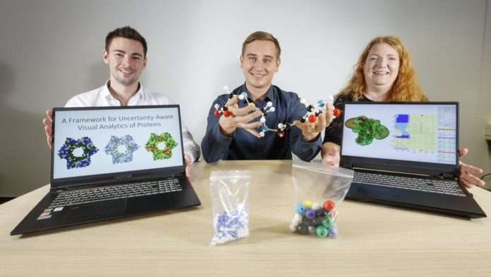 Für die Entwicklung von Molekülen können bestimmte Konstellationen Folgen haben. Bei vielen herkömmlichen Programmen, die Proteine darstellen und visualisieren, werden die Bewegungsprozesse der zugrundeliegenden Atome ignoriert. „Sie werden häufig als fixierte Kugeln im Raum betrachtet, obwohl sie einen gewissen Bewegungsraum besitzen“, erläutert Maack. „Dabei kann es durch die Bewegungen zu Wechselwirkungen zwischen den Atomen kommen.“