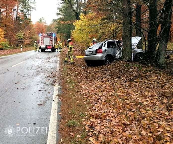 Zu dem Unglück kam es gegen 13 Uhr, als ein 30-jähriger Autofahrer mit seinem Audi A3 auf dem Weg in Richtung Kaiserslautern war. Etwa ein Kilometer nach dem Ortsausgang von Hohenecken geriet der Wagen auf regennasser Fahrbahn ins Schleudern, kam von der Straße ab und krachte mit der Beifahrerseite gegen einen Baum. Während der Fahrer mit leichten Verletzungen davon kam und das Fahrzeug eigenständig verlassen konnte, wurde die Beifahrerin im Auto eingeklemmt. Die Feuerwehr befreite die 52-Jährige aus dem völlig deformierten Pkw. Sie wurde vor Ort notärztlich versorgt und anschließend vom Rettungsdienst ins Krankenhaus gebracht. Während der Rettungsarbeiten und der Unfallaufnahme musste die Straße voll gesperrt werden. Ein Gutachter soll nun klären, wie es zu dem Unfall kam. Die Ermittlungen laufen. |cri