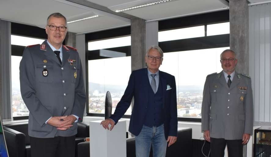 Der Kommandeur des Landeskommandos Rheinland-Pfalz der Bundeswehr, Stefan Weber, war heute zu seinem Antrittsbesuch zu Gast im Rathaus Kaiserslautern. Dort traf er sich mit Oberbürgermeister Klaus Weichel zu einem rund einstündigen Austausch. Weber ist seit September 2020 Landeskommandeur in Rheinland-Pfalz. Als Landeskommandeur repräsentiert er die Bundeswehr und ist erster Ansprechpartner der Landesregierung. Bei seinem Besuch im Rathaus begleitet wurde er von Heinz Klages, dem Leiter des Kreisverbindungskommandos der Stadt Kaiserslautern.