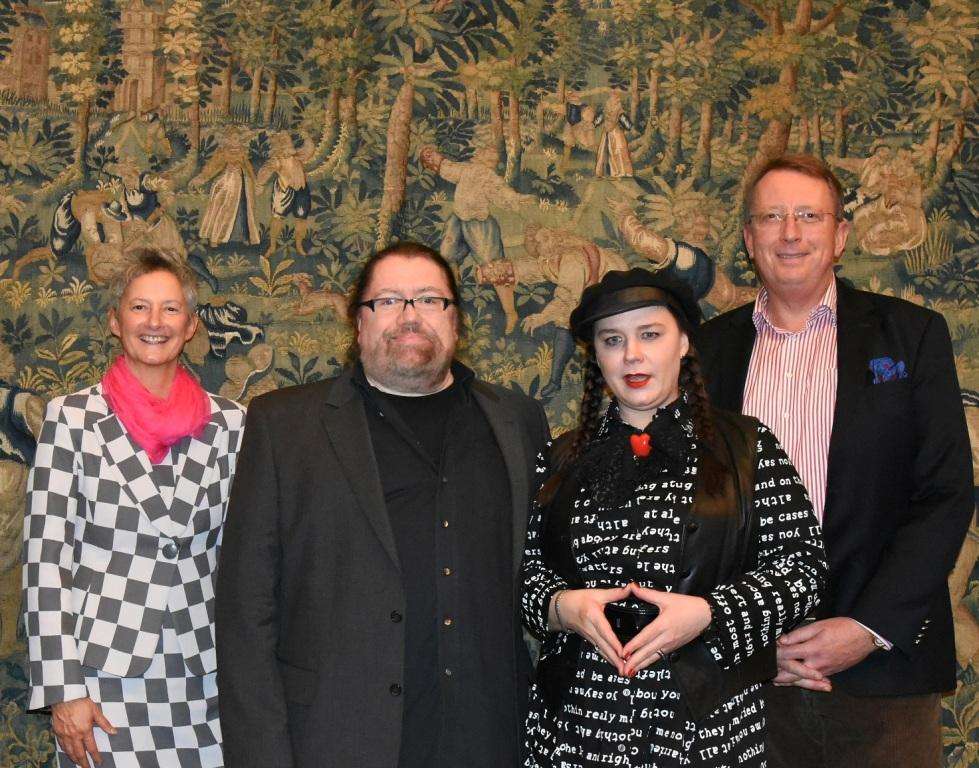 Das Foto zeigt die „Untiere“ Wolfgang Marschall und Marina Tamássy, umrahmt von Bürgermeisterin Beate Kimmel und Kulturreferatsleiter Christoph Dammann.