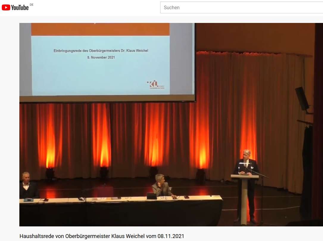 Haushaltsrede von Oberbürgermeister Klaus Weichel vom 08.11.2021