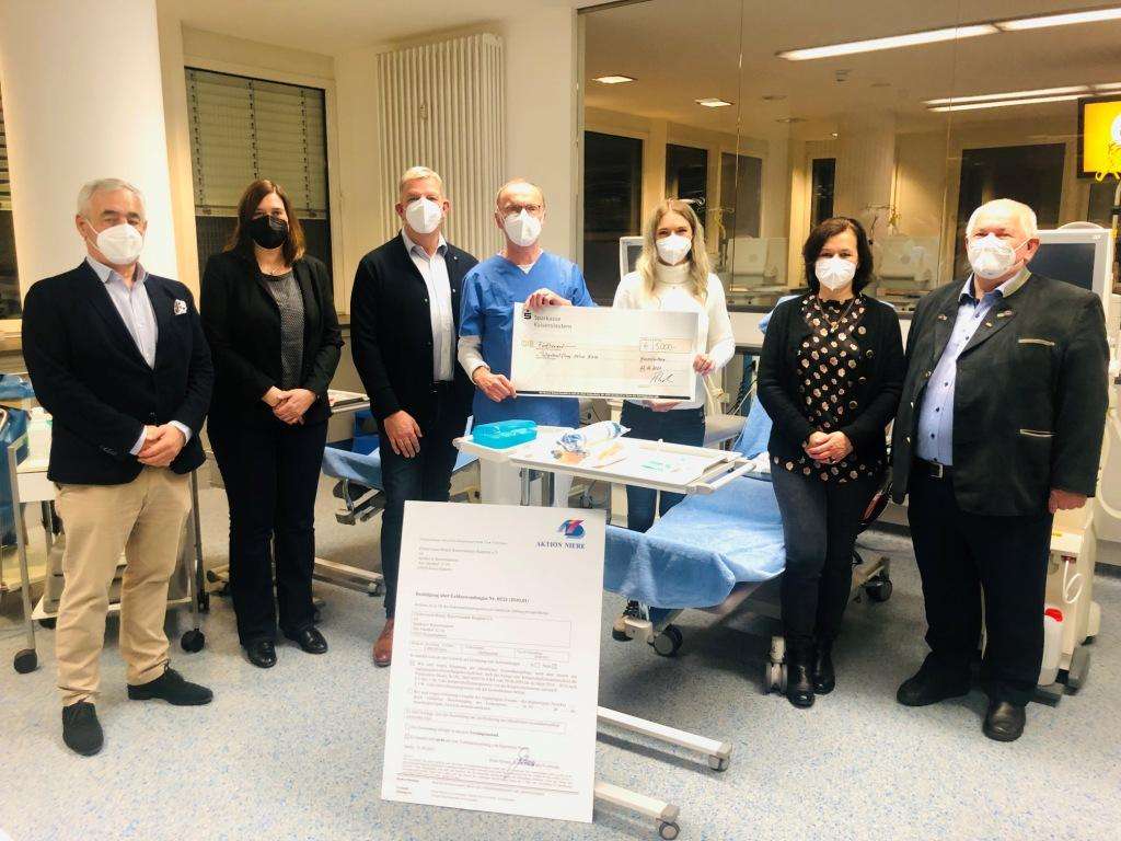 Eine Spende in Höhe von 5.000 Euro wurde am Dienstag, 23. November 2021 im Rahmen der diesjährigen Unterstützung des Rotary-Clubs Kaiserslautern-Kurpfalz und Rockenhausen an die Vertreterinnen und Vertreter der Patientenstiftung Aktion Niere und des Bundesverband Niere e.V. im Dialysezentrum am Stiftsplatz in Kaiserslautern überreicht. Die Corona-Pandemie stellt schwer nierenkranke Menschen vor enorme Herausforderungen und konfrontiert sie mit noch höheren Risiken als zuvor. Qualifizierte Angebote zur Beratung, Unterstützung und Betreuung sind unerlässlich. Die großzügige Spende ermöglicht die Durchführung eines Sozialseminars und die Qualifizierung zusätzlicher ehrenamtlicher PatientenBegleiter.