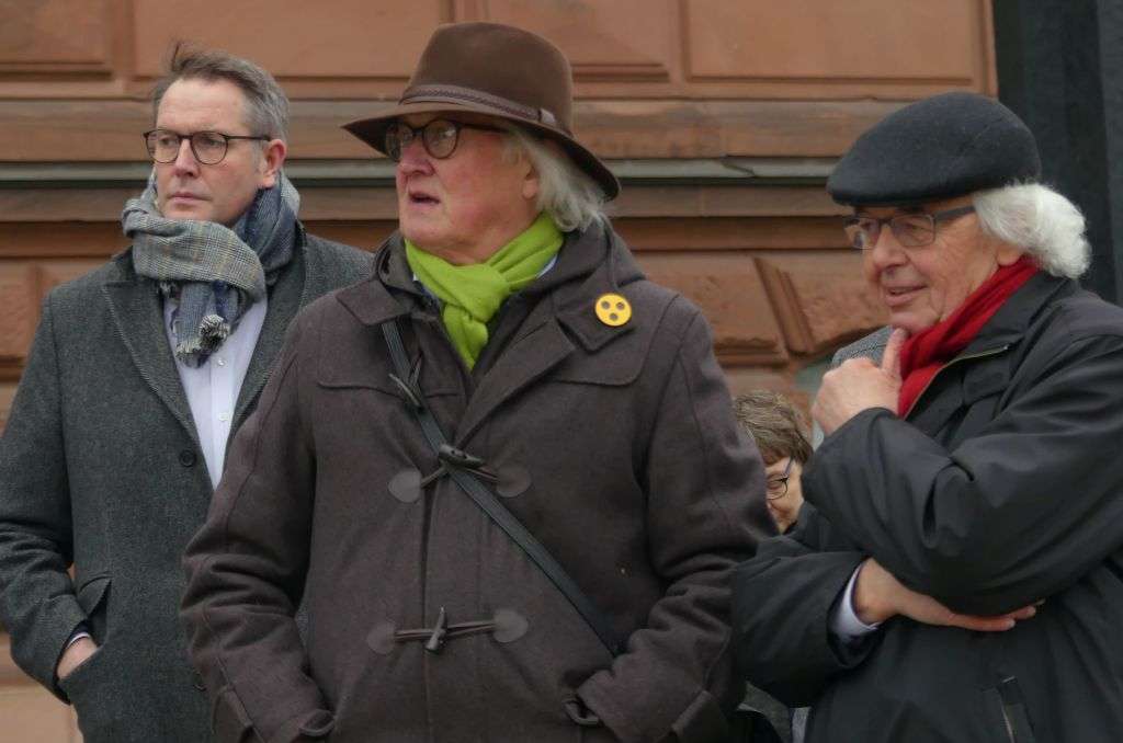 Die beiden Initiatoren des Projekts „Ein Bernhard für die Pfalz“ (von rechts): Manfred Geis und Wolfgang Thomeczek mit Staatsminister Alexander Schweitzer
