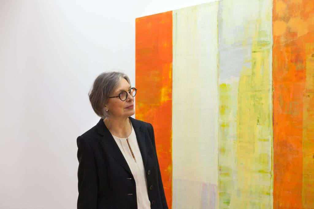 In der Sonderausstellung „Finale – Director’s Cut“: Dr. Britta E. Buhlmann mit Arvid Boeckers Gemälde „#362“ von 2005