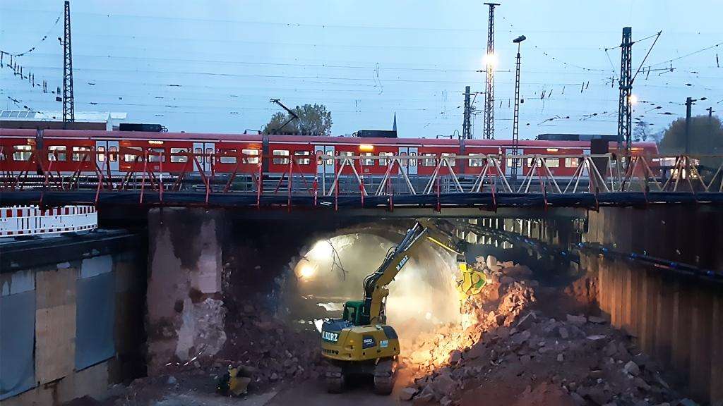 Die Bauarbeiten schreiten planmäßig voran. Derzeit wird die alte Brückenkonstruktion zurückgebaut. Dabei werden 5000 Tonnen zurückgebautes Material abtransportiert. Zudem finden Kabeltiefbauarbeiten statt. Während der Arbeiten werden Hilfsbrücken eingesetzt, um Einschränkungen im Zugverkehr zu vermeiden.